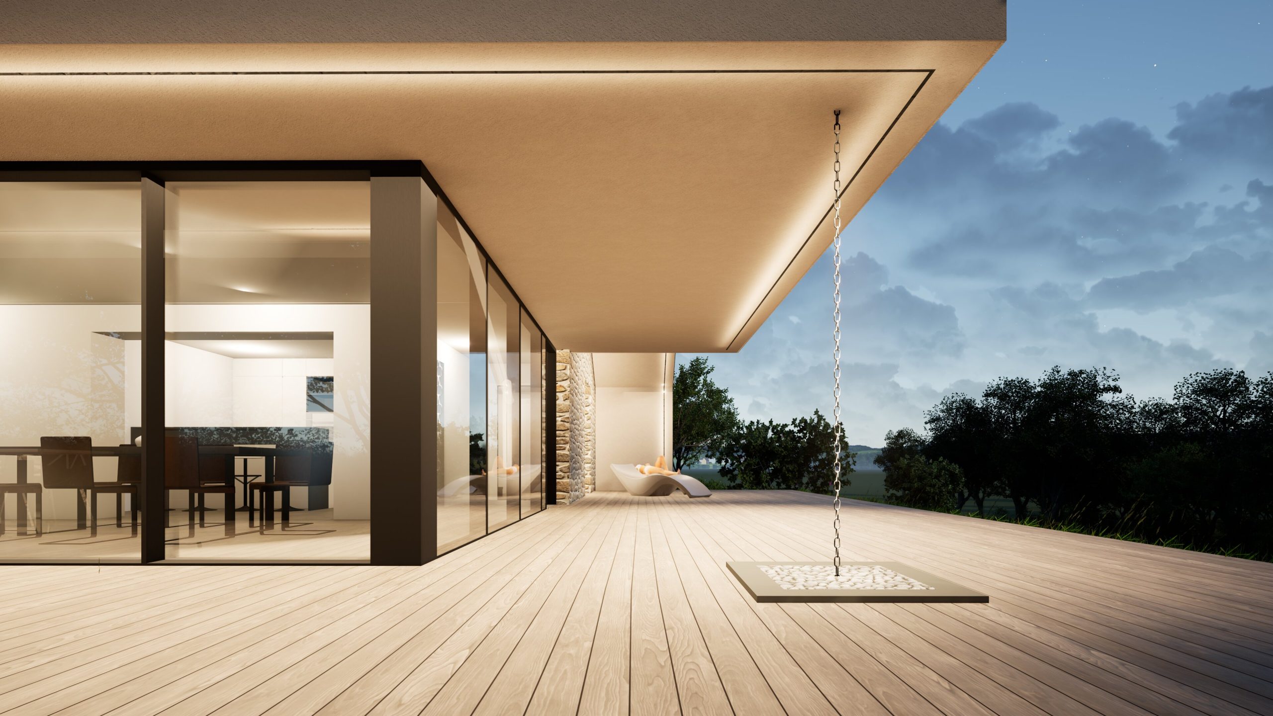 L’aménagement privilégie une continuité fluide entre l’intérieur et l’extérieur, grâce à de larges ouvertures et des espaces de vie prolongés vers l’extérieur. Terrasses, jardins et espaces détente deviennent le prolongement naturel du gîte, permettant de profiter pleinement du cadre enchanteur.
