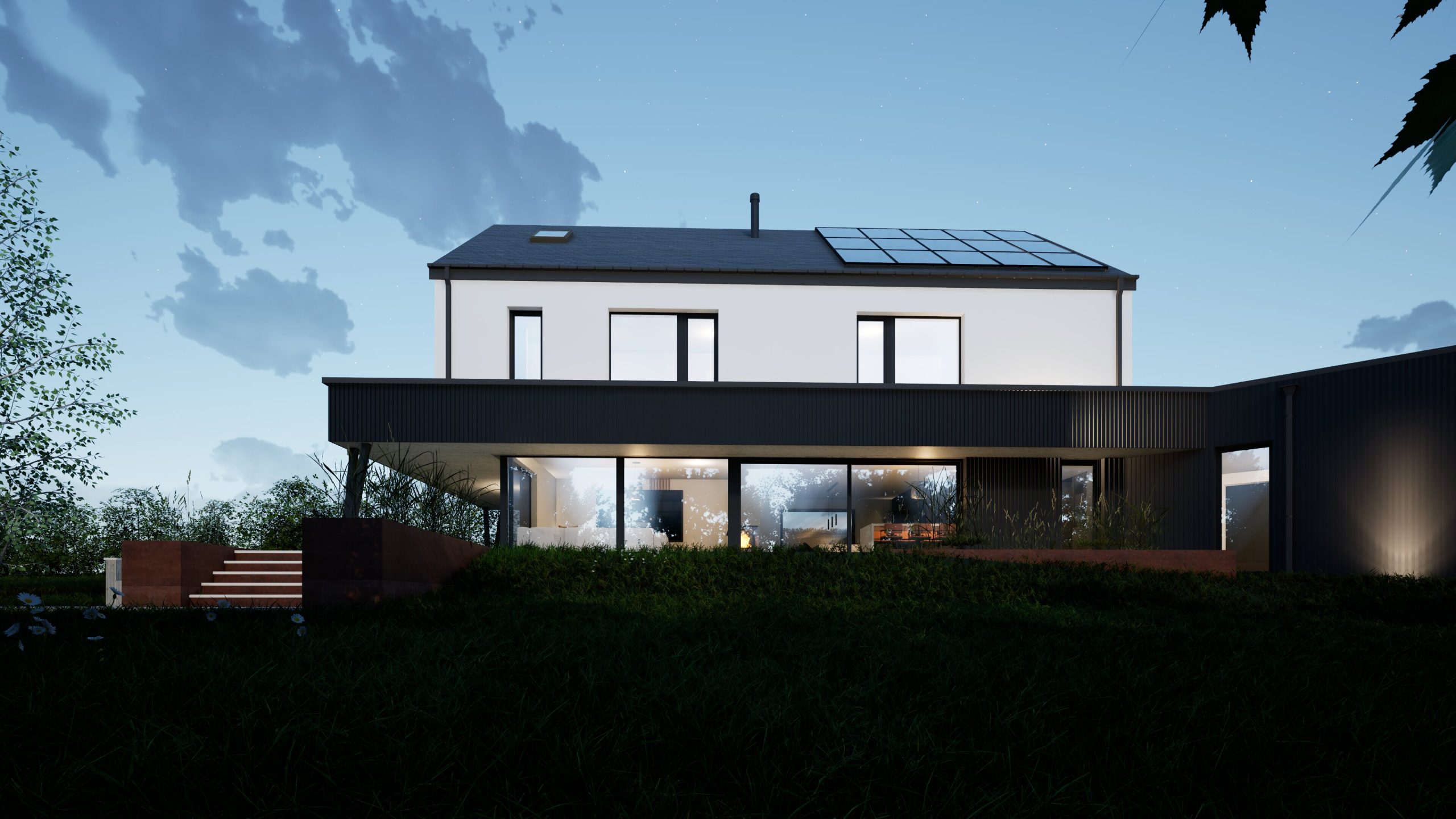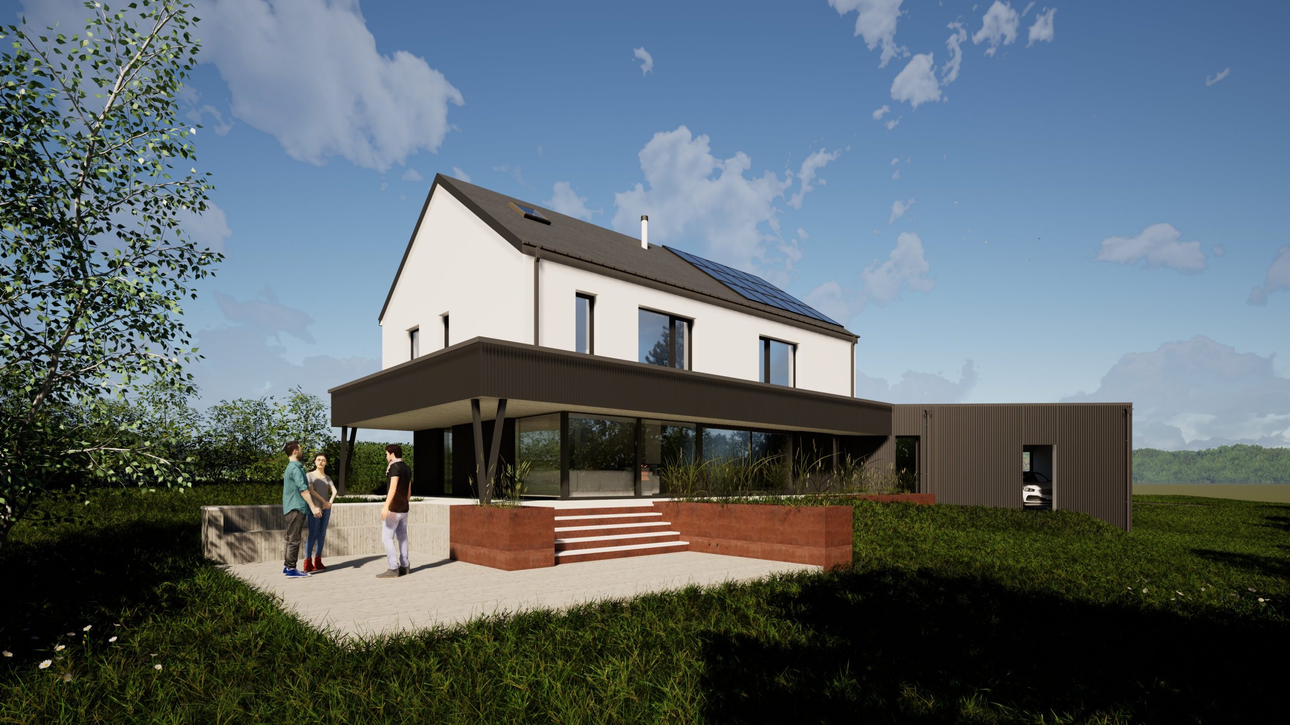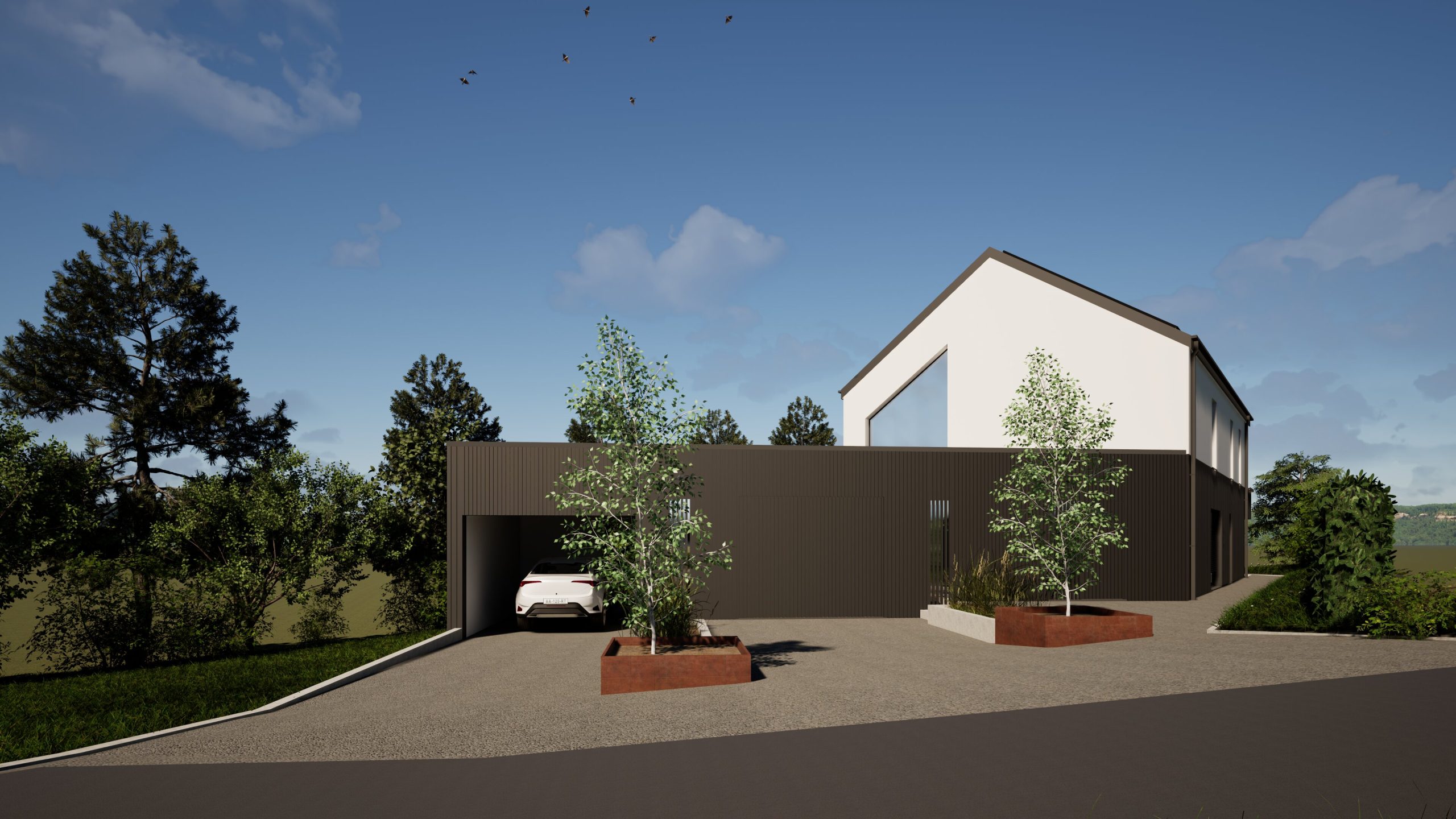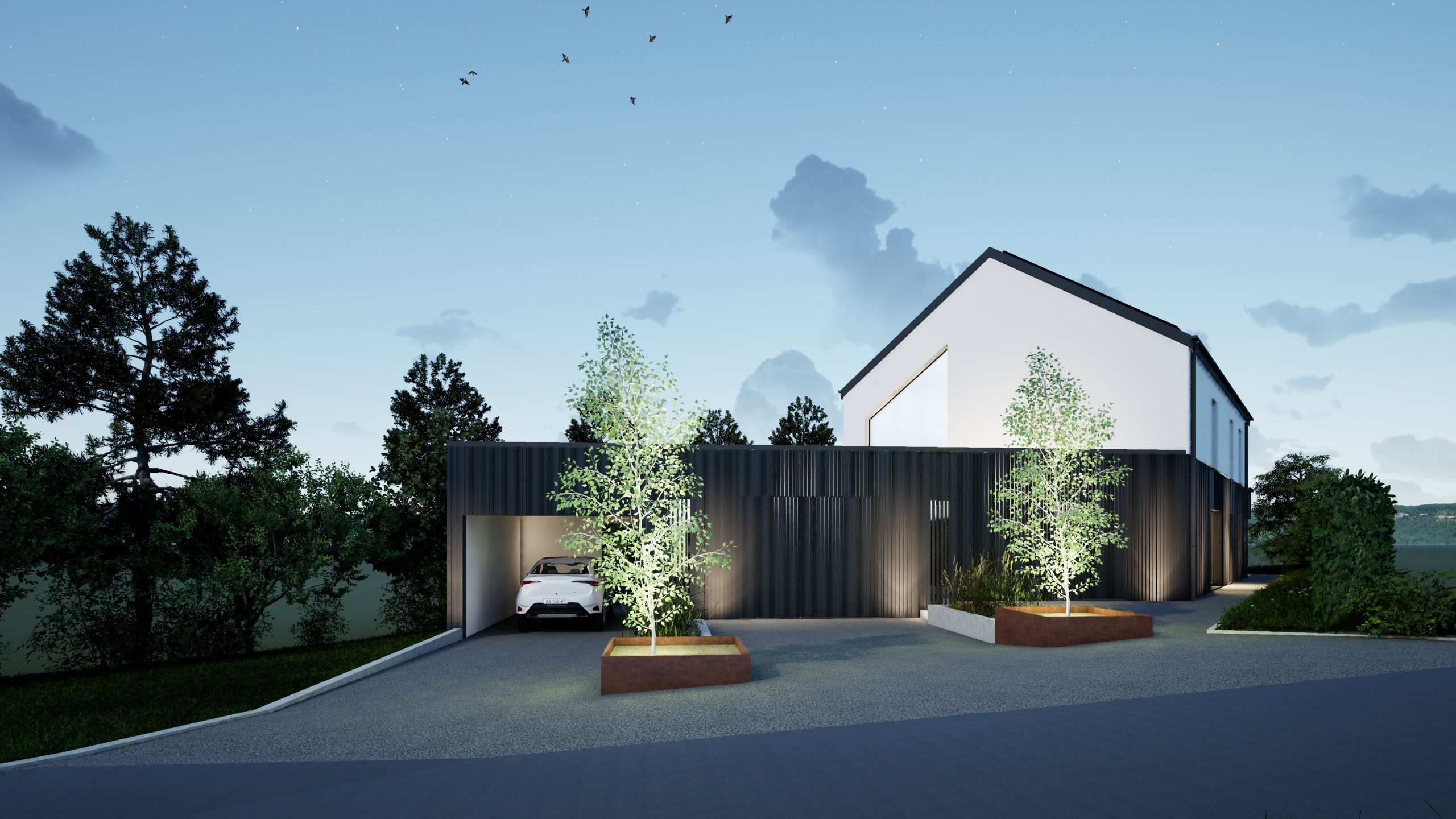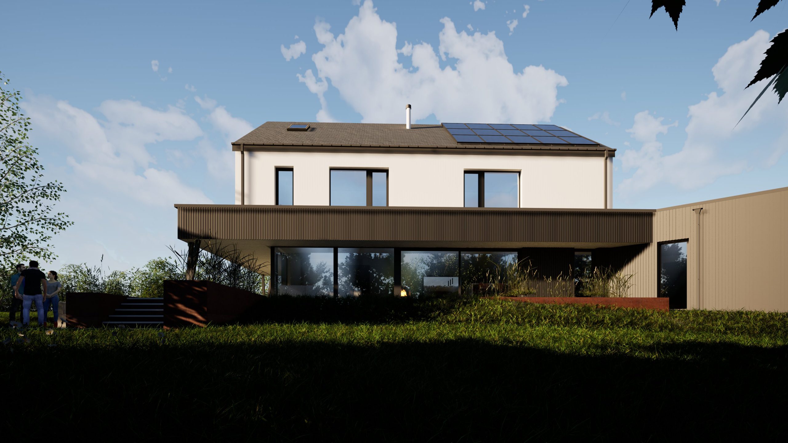 Implantée à Anlier, cette maison unifamiliale allie modernité et élégance avec une architecture épurée et des matériaux soigneusement sélectionnés. Son design met en valeur un contraste subtil entre un soubassement en bardage aluminium vertical et un crépi lumineux, apportant dynamisme et légèreté à l’ensemble.
