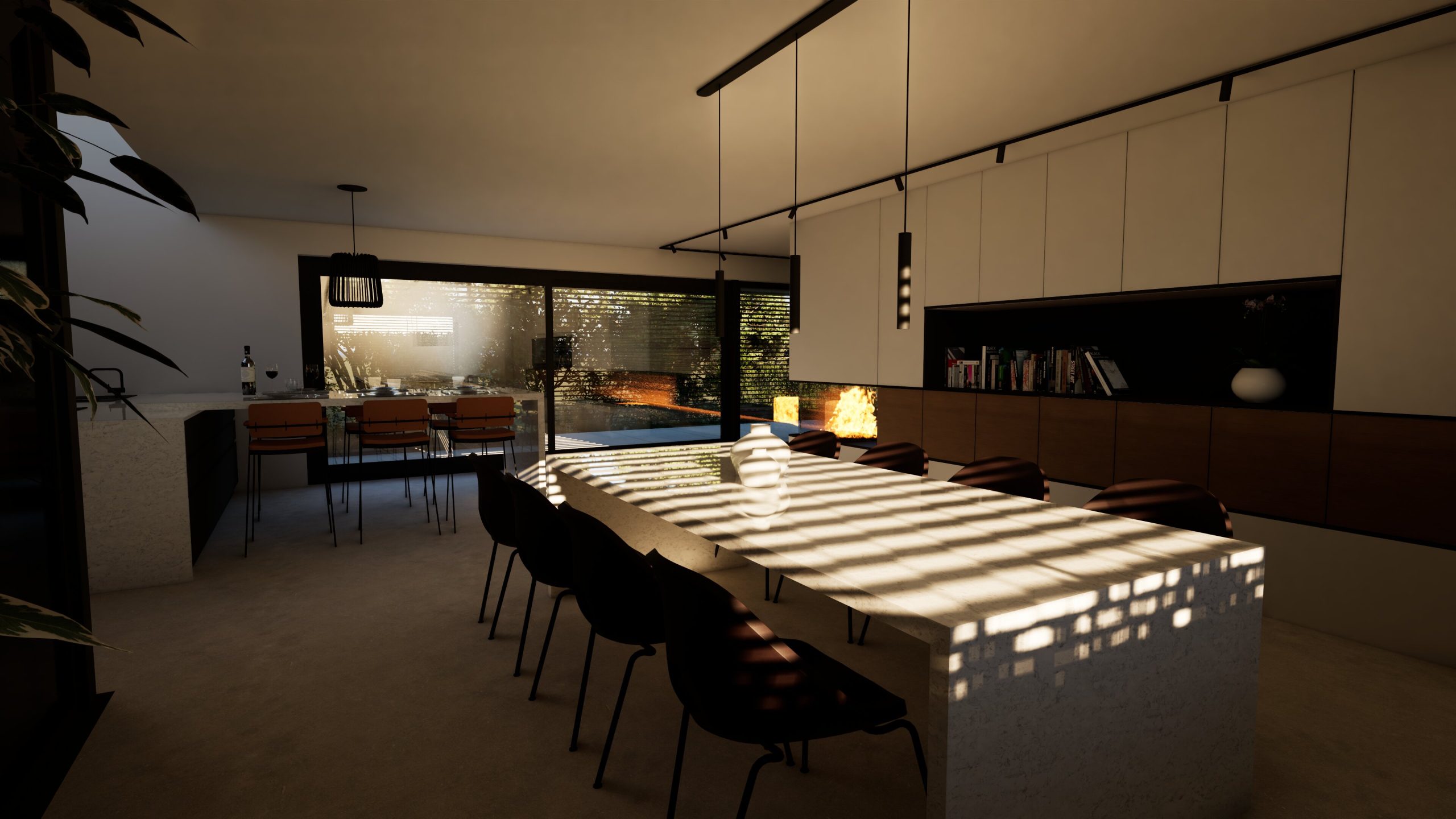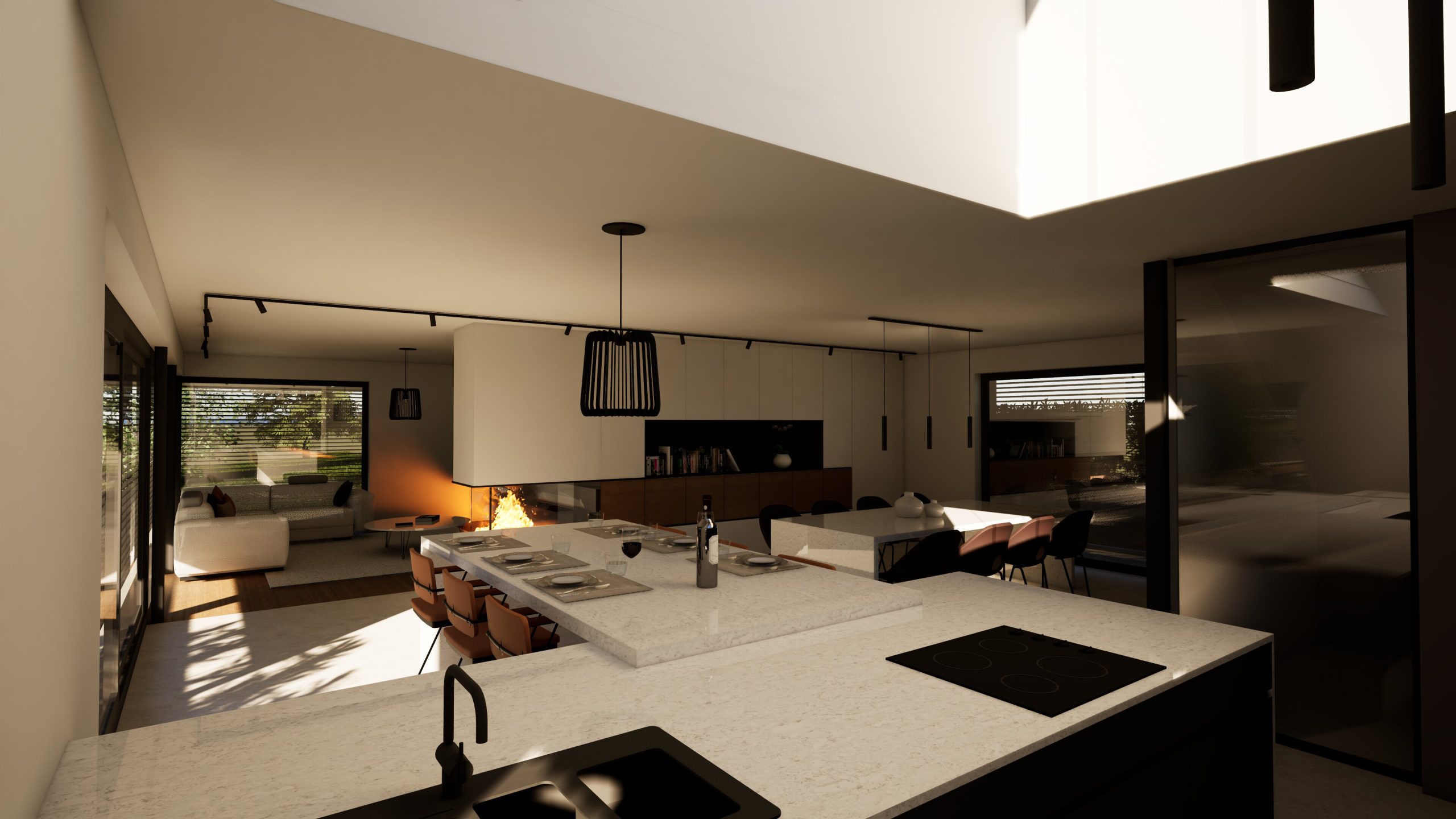 Pensée pour une connexion fluide avec son environnement, la maison s’ouvre généreusement sur le jardin grâce à de nombreuses ouvertures, offrant des espaces intérieurs baignés de lumière et une continuité naturelle entre l’intérieur et l’extérieur.